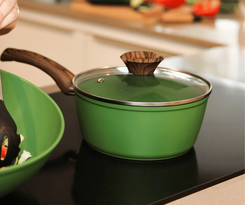 Geen troep in je pan. Wel stijl op tafel. Onze PFAS-vrije pannen koken puur, clean en knetterlekker. Gemaakt om jaren mee te gaan, met liefde voor de planeet én jouw fornuis.