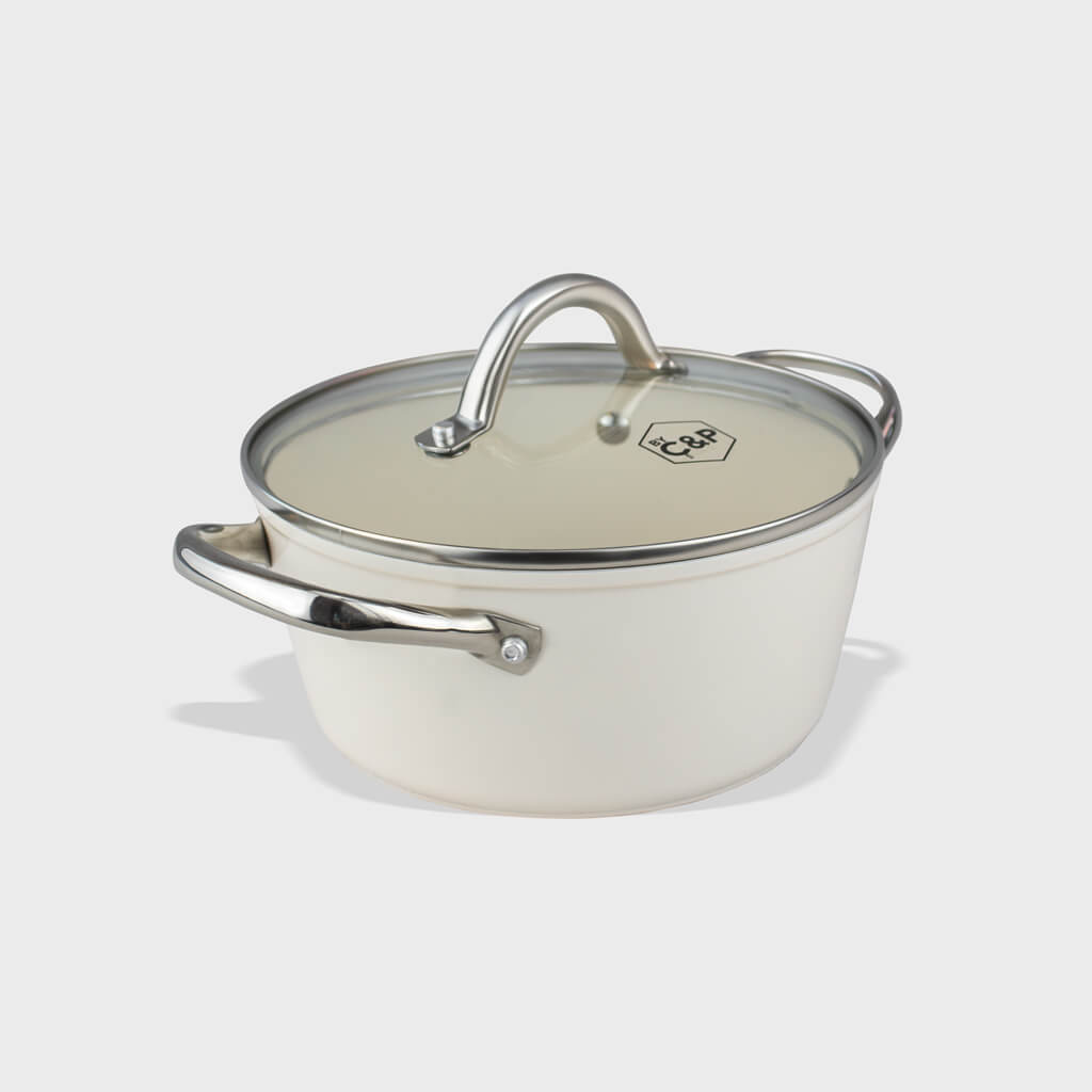 Bij Cook and Pan bevatten al onze pannen geen PFAS en andere schadelijke stoffen. Dit komt doordat we Keramische anti-aanbaklagen gebruiken, die vrij zijn van PFAS, teflon en andere schadelijke stoffen. Onze braadpannen zijn verkrijgbaar in diverse maten en Unieke kleuren, bekijk bijvoorbeeld: de Go Ivory of de Go Green braadpan van 22 cm.