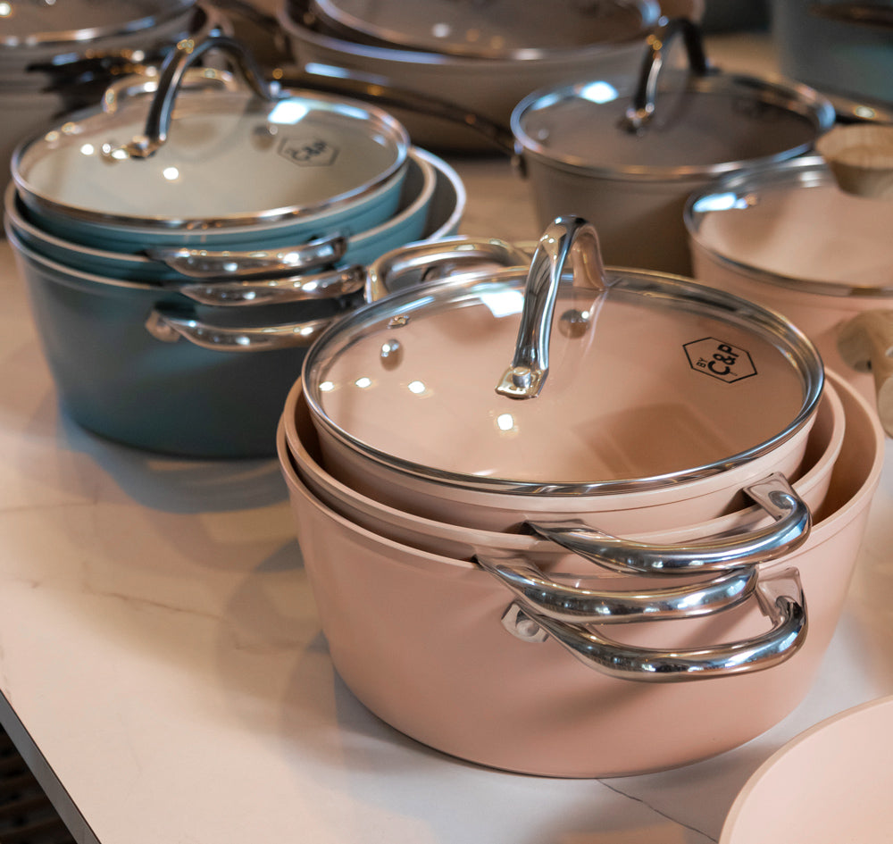 Det rosa Blush pandesæt er en gevinst for ethvert køkken. Non-stick belægningen er nem at rengøre, de tåler ovn (op til 180°C), og kogekarret endda op til 280°C! Og de kan gå i opvaskemaskinen. Plus: hurtig varmeledning sparer op til 30% energi og tid!