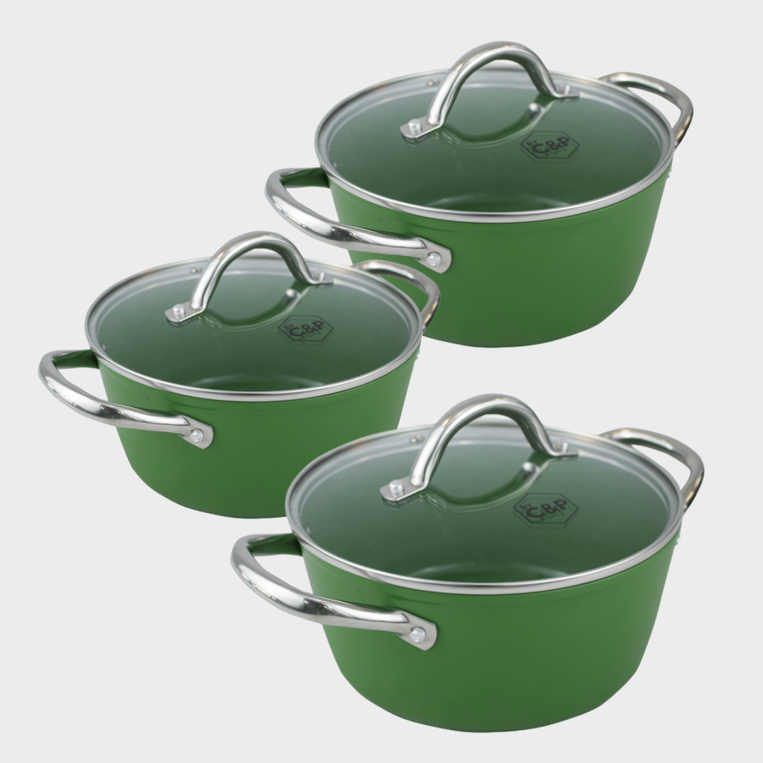 Onze Go Green kookpotten zijn de blikvangers in elke keuken. Deze stijlvolle 3-delige set (20, 22 en 24 cm) is niet alleen prachtig, maar ook fantastisch om mee te koken. Drie keer stijl, drie keer kwaliteit – voor elk gerecht de perfecte pan.