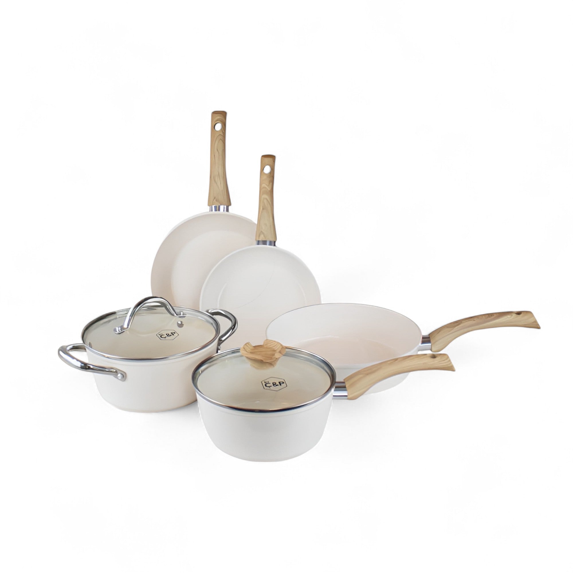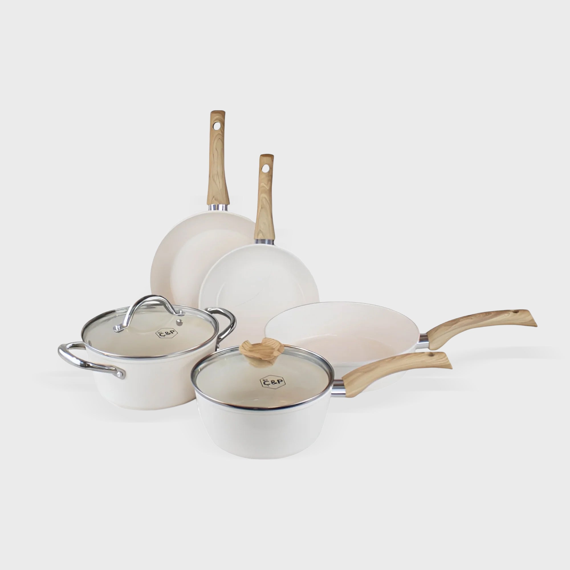 Mit dem Go Ivory Topfset und Pfannenset bist du bestens ausgestattet, um leckere Mahlzeiten zuzubereiten. Für jede Kochtechnik ist der passende Topf oder die passende Pfanne dabei. Jede Pfanne ist mit einer langlebigen keramischen Antihaftbeschichtung versehen, die völlig frei von PFAS ist. Das ermöglicht nicht nur gesünderes Kochen, sondern verlängert auch die Lebensdauer deiner Töpfe und Pfannen deutlich. Das wunderschöne Go Ivory Topfset und Pfannenset garantiert müheloses, tägliches Kochen.