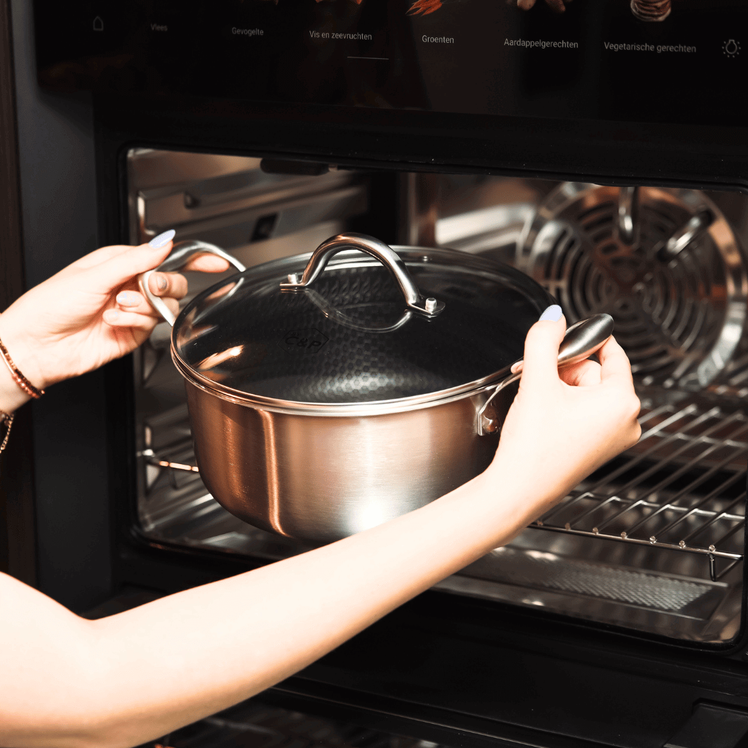 Made of strong, safe materials and designed with a generous dose of ease of use. We're head over heels in love with the design—and you can taste it. Our designers have created cookware that will make your heart beat faster. Every meal becomes a moment of flavor, care, and pleasure—for the people around you. And yes, of course, a little for yourself too.