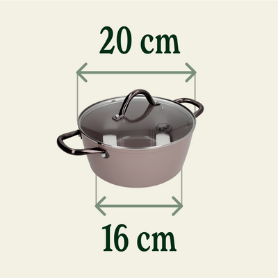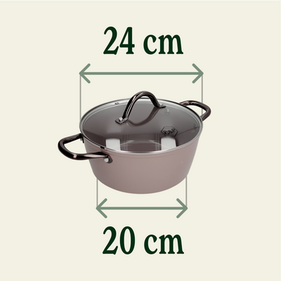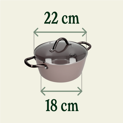 The beige Taupe or Mind cookware set is an asset to your kitchen. The non-stick coating is easy to clean, oven-safe up to 280 degrees, and dishwasher-safe. Moreover: up to 30% energy and time savings thanks to the excellent heat conduction!