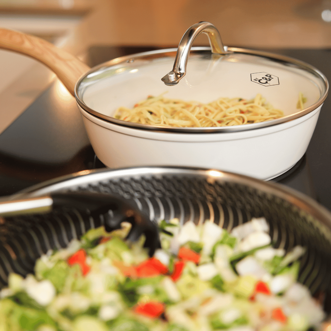 Dankzij de nauwsluitende rand kun je het vuur eerder terugschakelen. Minder gas of elektriciteit, maximale smaak – goed voor het milieu én je portemonnee.